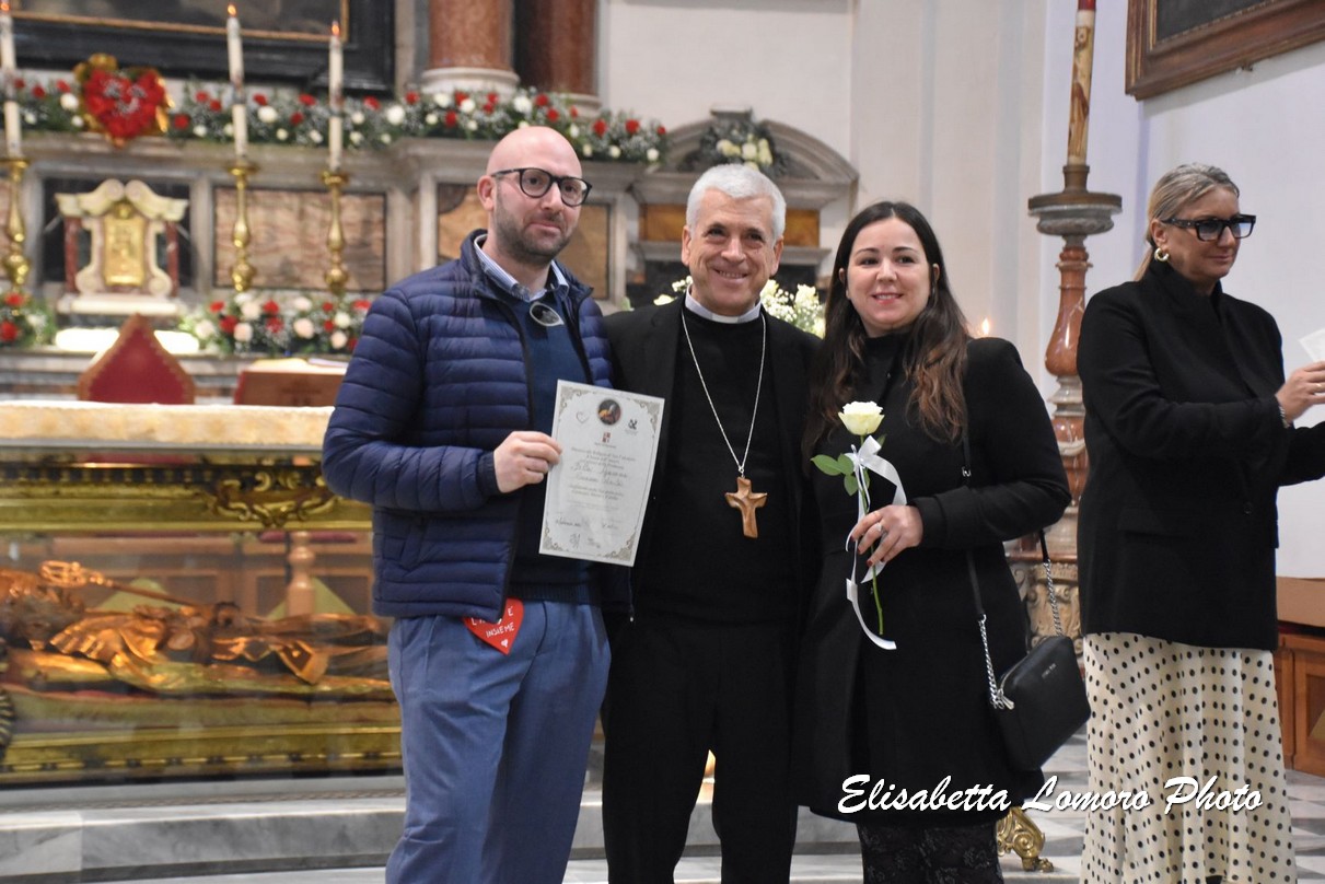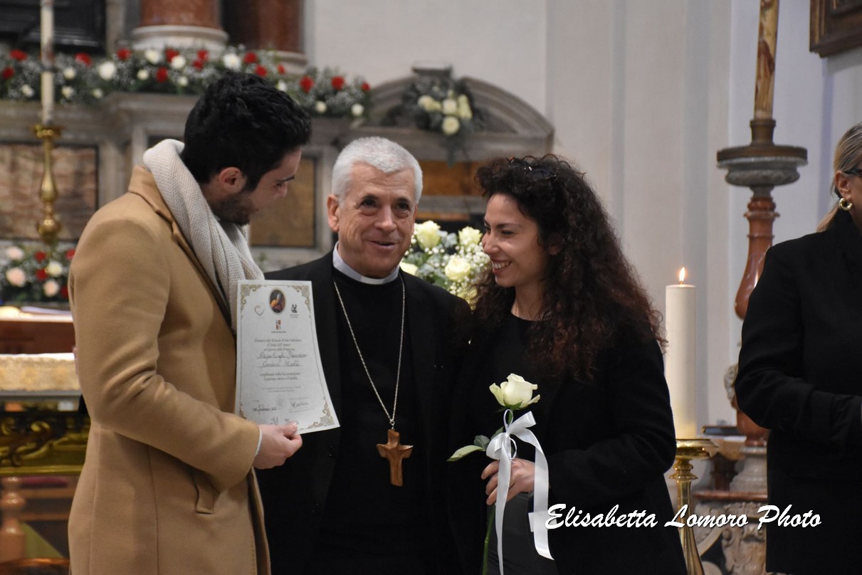 «Il senso vero della vostra presenza oggi accanto a san Valentino – ha detto il vescovo – edifica e cementa quello che sta sbocciando nella vostra vita, ossia l’amore, che non finisce mai ed è come un giardino che rifiorisce, un germogliare continuo, nel quale si sente anche il profumo della vita nuova e bella che ognuno emana per l’altra persona e che insieme costituiscono il bel giardino della chiesa e della società.