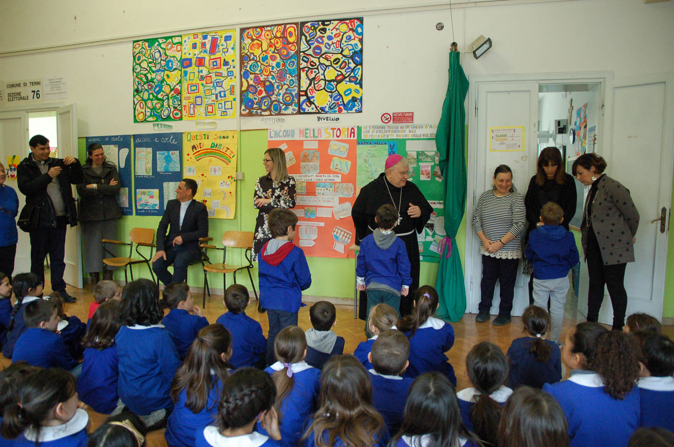Nell’ambito della visita pastorale il vescovo ha incontrato gli studenti, insegnanti della scuola primaria “Marco Di Sarra” dell’istituto comprensivo “Oberdan”, salutato dal dirigente scolastico Patrizia Fioretti che ha presentato la scuola e le attività formative. I bambini delle cinque classi hanno accolto il vescovo con due canti.