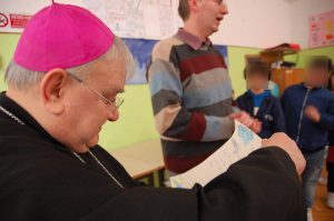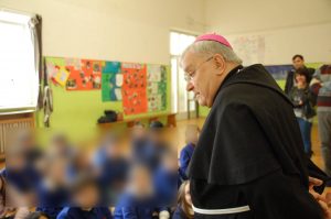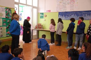 Il vescovo si è presentato ed ha spiegato il significato della visita pastorale. “E’ per me veramente una grande gioia questo incontro – ha detto il vescovo – mi fate ricordare la mia infanzia. Sono venuto per conoscervi, salutarvi e dirvi che vi voglio bene. A voi ragazzi rivolgo l’invito ad essere attenti e bravi studenti per essere buoni cittadini e bravi cristiani, che possiate crescere sani, sapienti e intelligenti tutti e di vivere sempre riconoscendo tutti come fratelli”.
