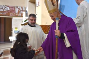 Rivolgendosi poi al seminarista Matteo: “Oggi sei ammesso agli Ordini Sacri, in questa parrocchia dove sei accolto per maturare nella sua esperienza e nel servizio. Ti affido le parole del Salmo 22 “Il Signore è il mio pastore non manco di nulla…”, rimani sempre ancorato a questa Parola di salvezza, che vuol dire il tutto, in ogni circostanza della tua vita da oggi in avanti sarà per te tutto significativo se sarai sempre con il Signore”.
