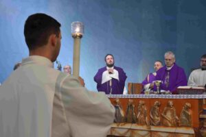“Nel buio della nostra vita, Dio si manifesta come una lampada che indica il suo cammino – ha detto il vescovo nell’omelia -. Dio viene per farci tornare da lui, ridando speranza e invita alla fiducia. Un pastore buono, ha cura di chi è debole e piccolo e ci chiama a convertirci a lui. Parlare al cuore, che è l’intimità più profonda e tocca la vita delle persone. Mettere in atto un cantiere, per mettere in atto cambiamenti. La strada verso il cielo è Gesù, l’eucarestia che celebriamo. Dobbiamo mettere a posto tutto ciò che impedisce di andare spediti nella via del Signore, ciò che impedisce la vicinanza con il Signore. Nella nostra vita che spesso è deserto dobbiamo cercare di far scaturire Dio, perchè senza Dio non si può vivere”.