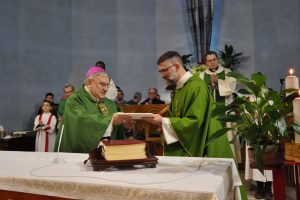 Il vescovo ha quindi indicato la necessità di completare il passaggio di consegne al nuovo parroco don Gabriel, alla costituzione del consiglio pastorale parrocchiale che insieme ai sacerdoti, al diacono studi e formuli un piano pastorale parrocchiale, rispondente alle mutate situazioni sociali e ai bisogni odierni. Il nuovo consiglio per gli affari economici e la nuova gestione delle risorse reali e potenziali di strutture e di persone su cui la parrocchia può contare come gli spazi per il ministero pastorale, la struttura di Castel del Monte, i ministri della comunione, i catechisti, il coro e i numerosi malati che sono visitati e che sostengono la parrocchia con la preghiera e la sofferenza, i genitori dei fanciulli del catechismo e della scuola parrocchiale dell’infanzia, che vanno formati e coinvolti nella parrocchia, nell’impegno del servizio pastorale della parrocchia.