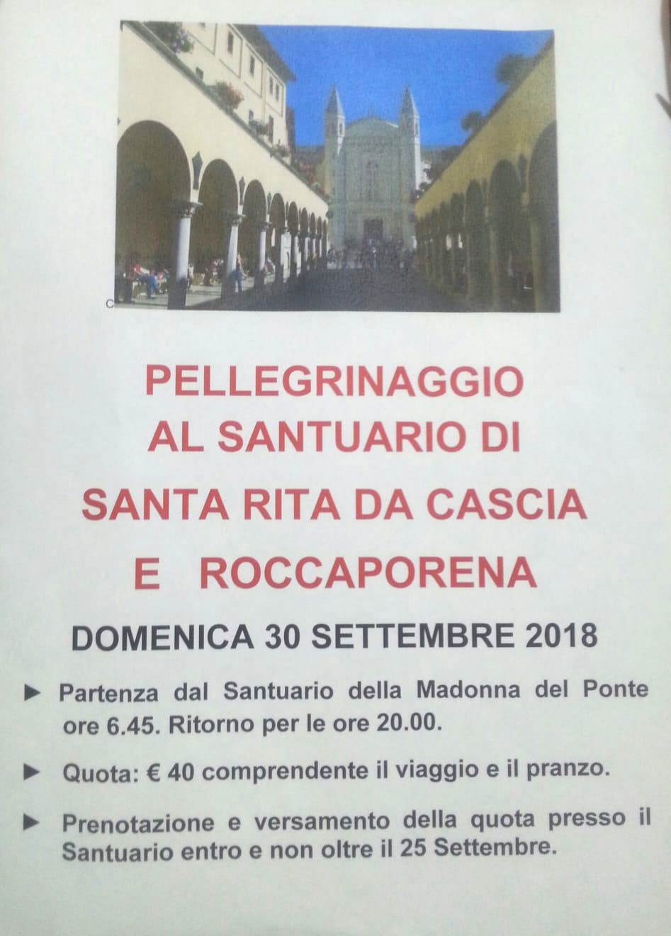 Domenica 30 settembre pellegrinaggio al santuario di Santa Rita da Cascia e Roccaporena