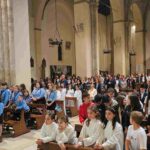 Tantissimi fedeli hanno partecipato, giovedì 30 maggio, alla celebrazione diocesana della solennità del Corpus Domini, alla messa presieduta dal vescovo Francesco Antonio Soddu, concelebrata dal vicario generale mons. Salvatore Ferdinandi e dai sacerdoti della diocesi, ed alla processione eucaristica con il Santissimo Sacramento per le vie del centro cittadino, dalla chiesa di San Francesco alla Cattedrale, in un lungo corteo di sacerdoti, confraternite delle varie zone della diocesi con i loro stendardi, i cavalieri e dame del Santo Sepolcro di Gerusalemme, gli Scout, i ragazzi che hanno ricevuto l’Eucarestia per la prima volta in questo anno, i rappresentanti delle associazioni e movimenti e delle parrocchie, animata dal coro della diocesi diretto da don Sergio Rossini e dalla banda “T.Langeli” di Cesi.