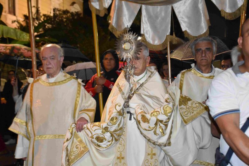 La processione si è conclusa con l’adorazione eucaristica e la benedizione solenne con il Santissimo Sacramento.
