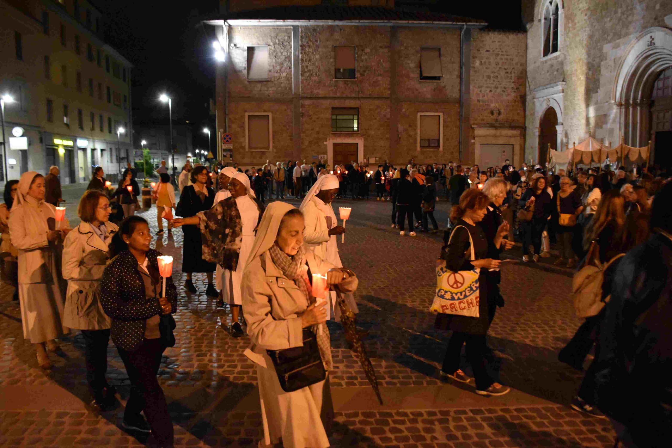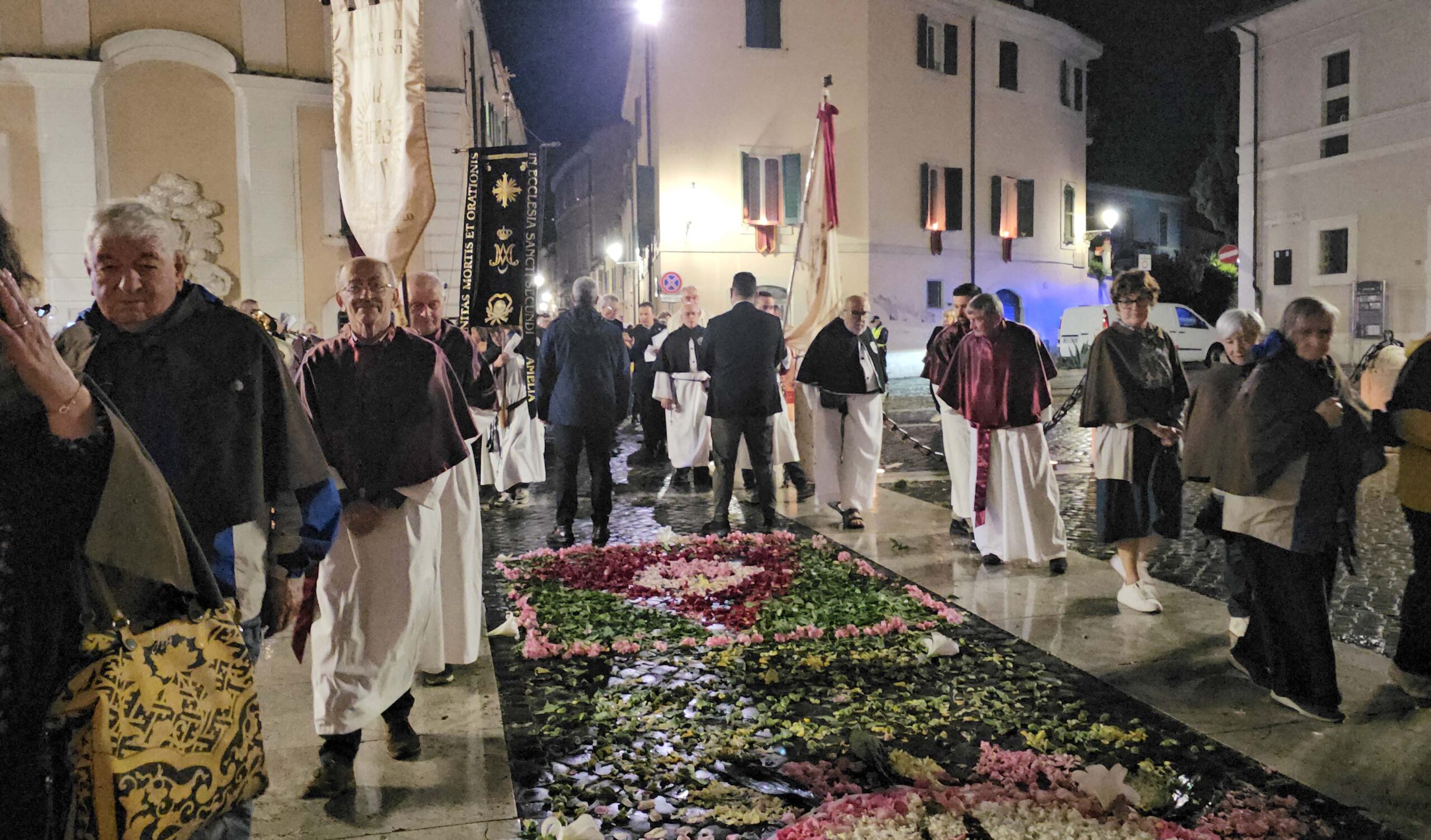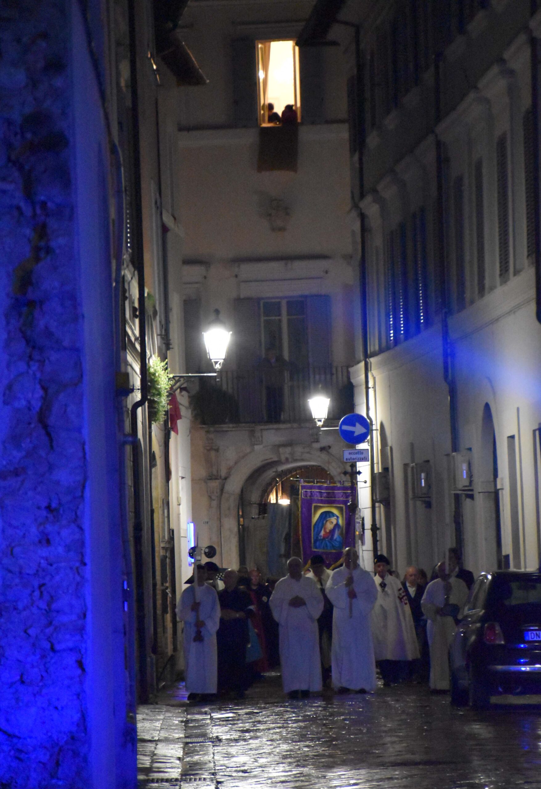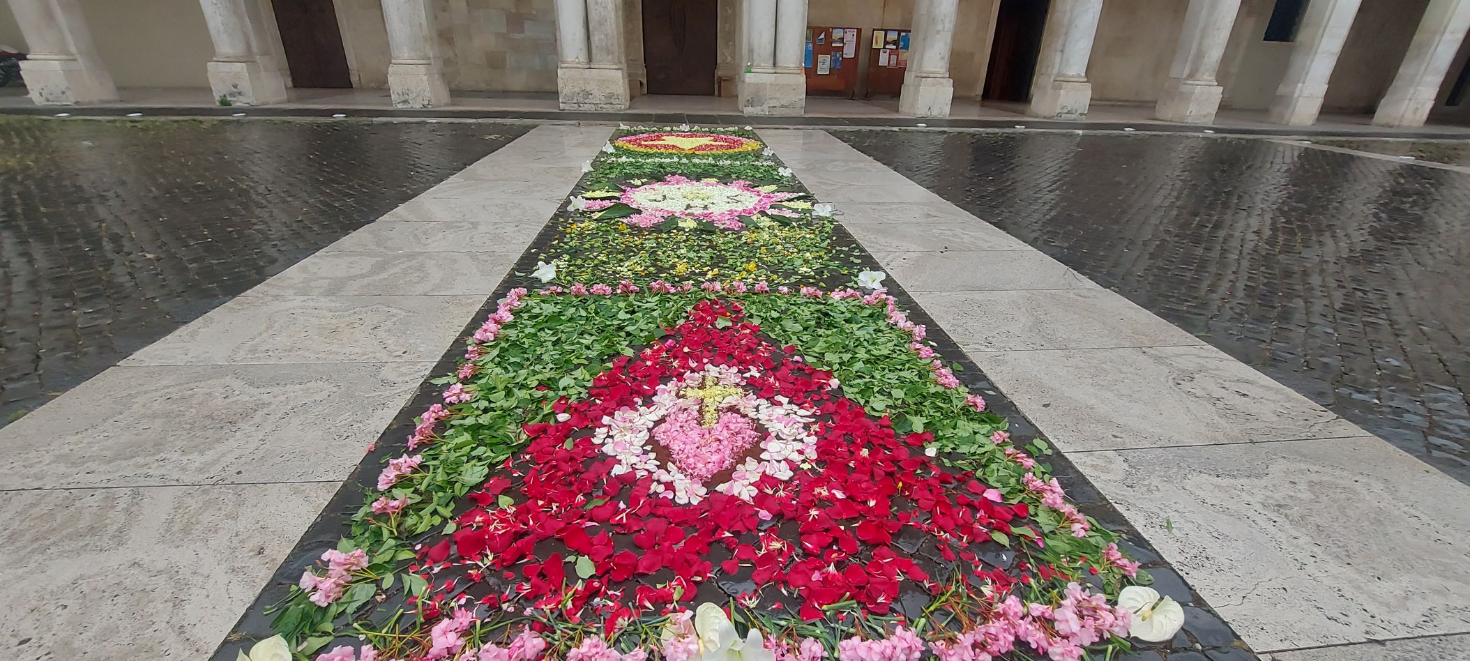 La lunga processione silenziosa, interrotta solo da preghiere e canti, si è snodata lungo le vie del centro di Terni da piazza Tacito, passando per la chiesa di San Pietro e fino alla Cattedrale, dove è stata allestita un’infiorata dai volontari dell’ufficio liturgico e della Cattedrale. C’è stata la preghiera del presidente di Azione Cattolica diocesana Rita Pileri per una comunità cittadina che sia capace di farsi vicina ai bisognosi e stranieri, compagna di chi lavora, e nella difesa dei diritti “Oggi vieni adorato anche per le vie delle nostre città, Gesù che nutri la nostra sete di giustizia e verità con il tuo sangue, facci essere ogni giorno ed in ogni luogo testimoni del tuo amore per tutta l’umanità, tu ci sei necessario per liberare i nostri cuori dalla tentazione della disperazione, per imparare l’amore vero, per camminare nella gioia, per moltiplicare l’amore con la carità e orientare l’umanità verso la giustizia e la pace”.