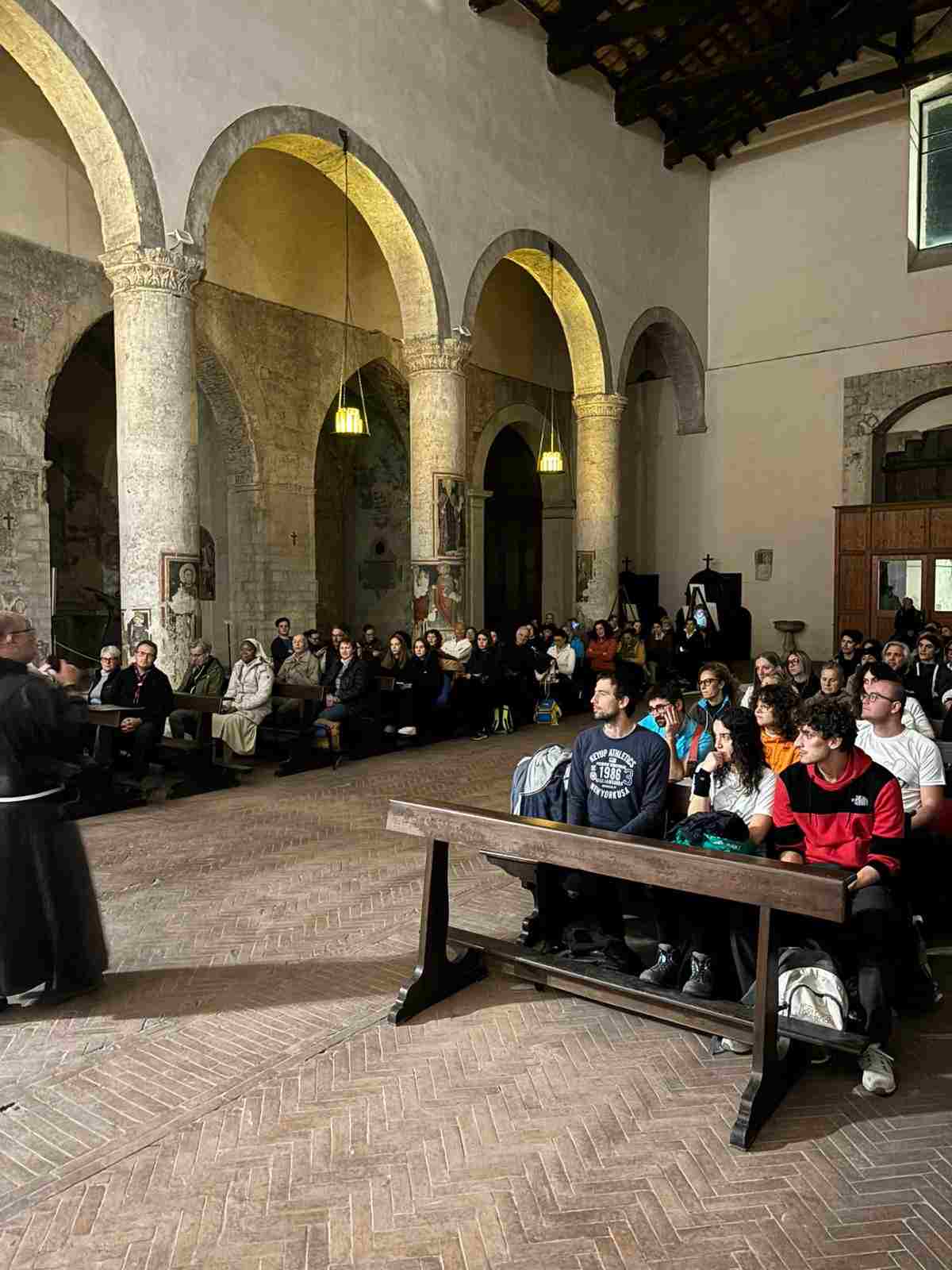 “A piedi per San Francesco illuminati dalla speranza” è il tradizionale pellegrinaggio a piedi dalla chiesa di San Francesco a Narni allo Speco francescano di Sant’Urbano che, in occasione della festa di san Francesco, viene proposto dai giovani della diocesi e dai frati francescani, un cammino di fede per assimilare sempre di più i sentimenti di Gesù, nella memoria del transito di san Francesco che è diventato nuovo creatura abbracciando Gesù in croce e seguendolo nell’osservanza del Vangelo. Tanti fedeli di ogni età si sono ritrovati nella chiesa San Francesco in Narni nella serata del 3 ottobre da dove è partito il pellegrinaggio. Un cammino silenzioso intervallato da preghiere e canti, lungo la strada tortuosa che si snoda tra i boschi e che si apre a suggestivi panorami. Allo Speco francescano di Sant’Urbano alle 4.00 nella chiesetta la celebrazione della messa presieduta dal vescovo Francesco Antonio Soddu, concelebrata da don Salvatore Ferdinandi e da padre Antonello Medda, alla presenza della comunità dei frati minori, dei sacerdoti della vicaria Terni 2 e di numerosi fedeli.