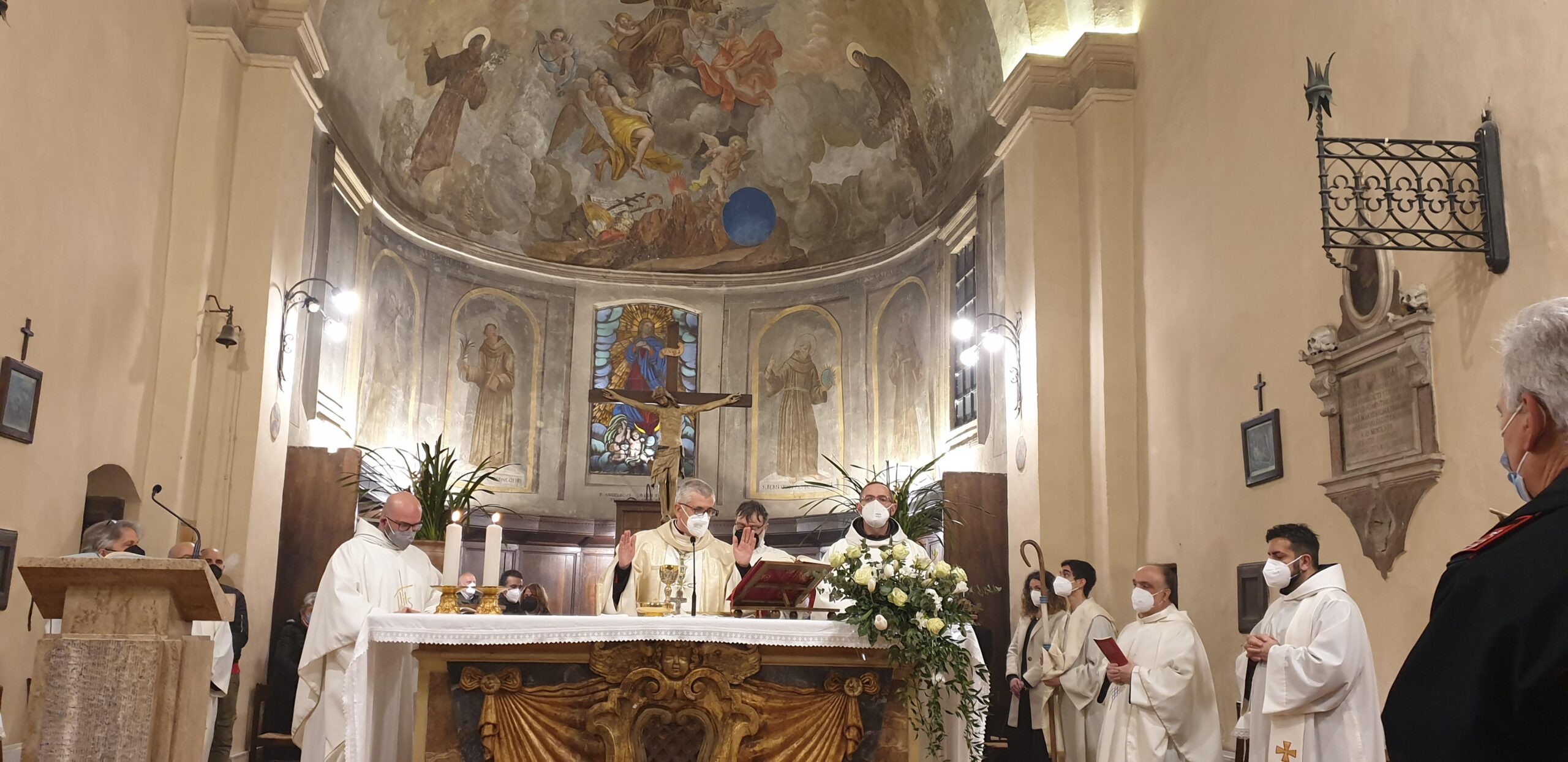 Al Santuario del Beato Antonio e dell’Ave Maria di Stroncone, dal 3 al 7 febbraio 2022, si celebra il transito del Beato Antonio Vici da Stroncone, patrono del paese. Domenica 6 febbraio alle ore 18 la solenne messa è stata presieduta dal vescovo di Terni-Narni-Amelia mons. Francesco Antonio Soddu, alla presenza del ministro provinciale dei Frati Minori dell’Umbria padre Francesco Piloni, del parroco di Stroncone padre Mario Macrì e del guardiano del convento San Francesco di Stroncone padre Danilo Cruciani. Presenti il sindaco di Stroncone Giuseppe Malventani, il vicesindaco di Assisi Valter Stoppini, i rappresentanti dell’ente agosto stronconese e dei tamburini della sfilata storica. E’ stata benedetta la nuova statua del beato Antonio Vici che dal 27 febbraio al 14 agosto sarà in pellegrinaggio tra le famiglie del territorio di Stroncone.