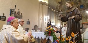 “Noi siamo un popolo in cammino – ha detto il vescovo – a volte usciamo fuori dalla carovana stanchi, ammaliati da luci fatue, attratti dalle lusinghe di questo mondo. Il beato Antonio con la sua testimonianza può aiutarci a riprendere il sentiero giusto. Lui che ha percorso la strada che porta al cielo, ci indica che possiamo anche noi, con l’aiuto del Signore, secondo i disegni di Dio, incamminarci sulla via della santità. Non dobbiamo copiare le manifestazioni esterne della loro santità, le forme di santità che essi hanno vissuto che sono legate alla sensibilità di ognuno, al percorso personale, indole di ciascuno, che sono legate alle specificità e alle modalità proprie di ogni tempo, ma seguire il Vangelo oggi, viverlo secondo le ispirazioni del Signore e secondo le modalità della storia nella quale vive ognuno. L’esempio del beato Antonio ci aiuta in questo, lui giovane attratto da Francesco d’Assisi all’età di 13 anni e quindi la comunità Francescana la presenza e l’esperienza dello zio Francescano è così una vita cristiana fervorosa della famiglia e della comunità lo hanno portato a scegliere la sequela di Cristo”.