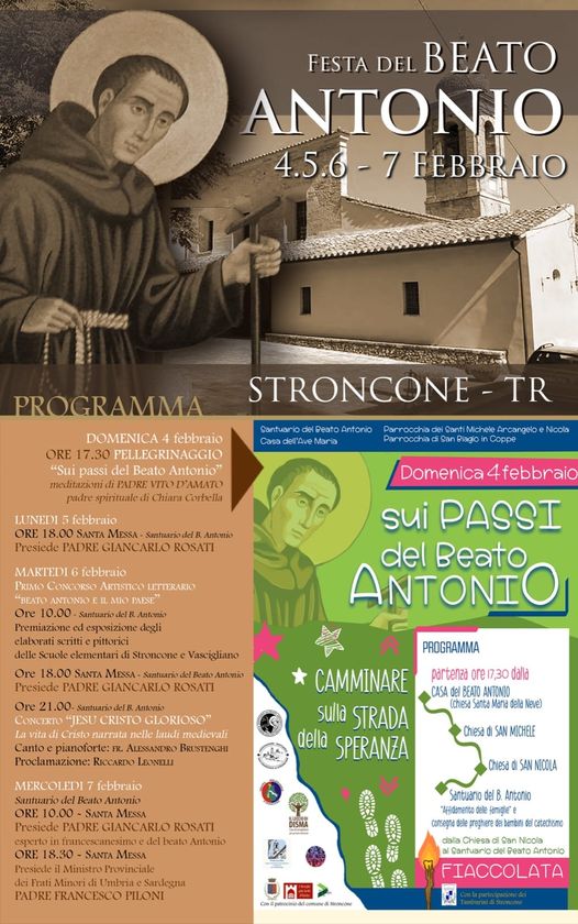 Al Santuario del Beato Antonio e dell’Ave Maria di Stroncone, dal 4 al 7 febbraio 2024, si celebrerà il transito del Beato Antonio Vici da Stroncone.