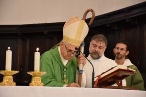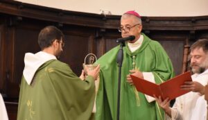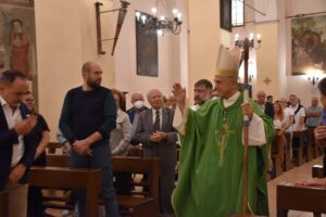 Il vescovo ha espresso la sua soddisfazione ed emozione in quella che è per lui la prima cerimonia d’ingresso del parroco da quando è diventato vescovo: “Sono contento che il primo parroco del mio ministero episcopale sia un francescano – ha detto il vescovo -. Siamo qui per incontrare Gesù e i frati sono per farvi incontrare Gesù, soprattutto vi devono donare Gesù. Il Signore ci dona tanto e noi dobbiamo condividerlo con gli altri, per guadagnarci il regno dei cieli. Gesù vuole la nostra gioia e che comprendiamo il senso delle sue parole, la vita vera che lui dona per l’umanità sulla croce”.