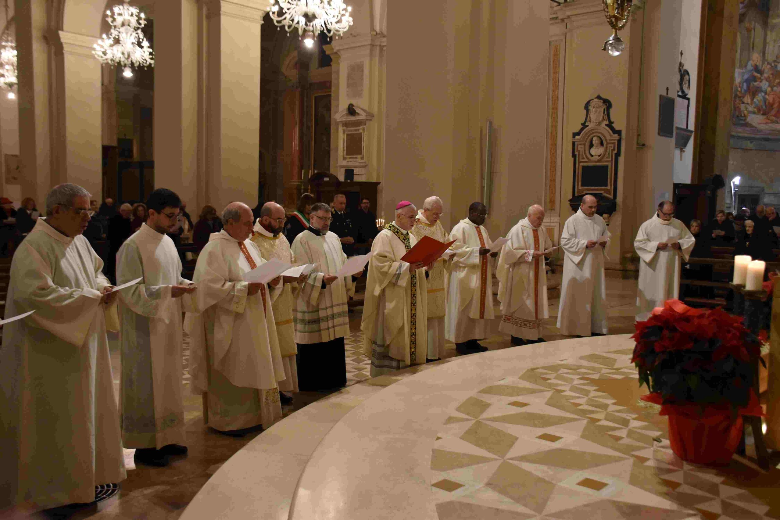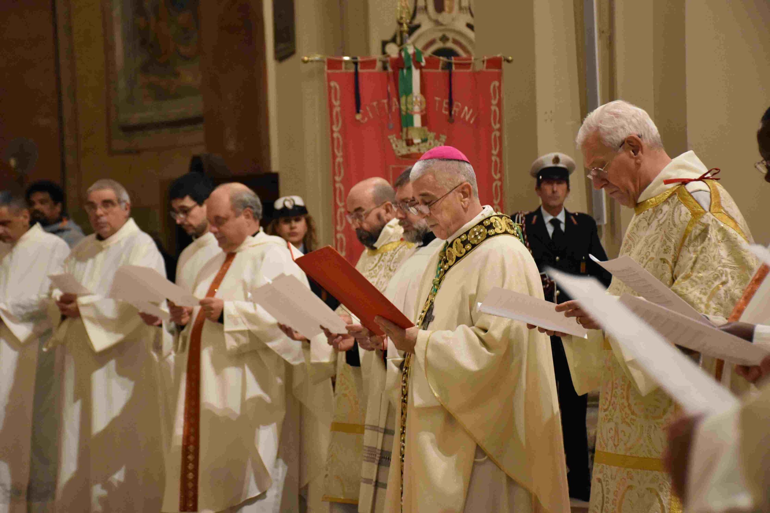 Celebrata dal vescovo Francesco Antonio Soddu nella Cattedrale di Terni la solenne messa di ringraziamento di fine anno con il canto dell’antico inno del “Te Deum”. Alla celebrazione erano presenti i canonici della Cattedrale di Terni, il parroco don Alessandro Rossini, la presidente del consiglio comunale di Terni Sara Francescangeli, gli assessori del Comune di Terni Viviana Altamura e Michela Bordoni, i rappresentanti delle altre autorità militari, dei cavalieri e dame dell’Ordine equestre del Santo Sepolcro di Gerusalemme, delle associazioni e movimenti ecclesiali.