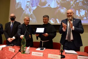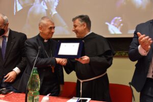 II premio, promosso dall’Unione Giuristi Cattolici e dal Movimento Cristiano Lavoratori, viene conferito a Padre Enzo Fortunato, “quale – si legge nella motivazione – autentico «operatore di pace», mediatore infaticabile, credibile testimone evangelico, per la sua straordinaria attività di promozione e diffusione del messaggio evangelico di Giustizia e Pace, con la quale ha saputo innovare, con impronta tipica francescana, il mondo della comunicazione cattolica e realizzare un modello di annuncio del cristianesimo credibile, personale e al passo con i tempi. E per il suo inesauribile impegno di costruttore di pace nel conflitto russo ucraino, affinché il dialogo e il negoziato prendano finalmente il posto delle armi”.