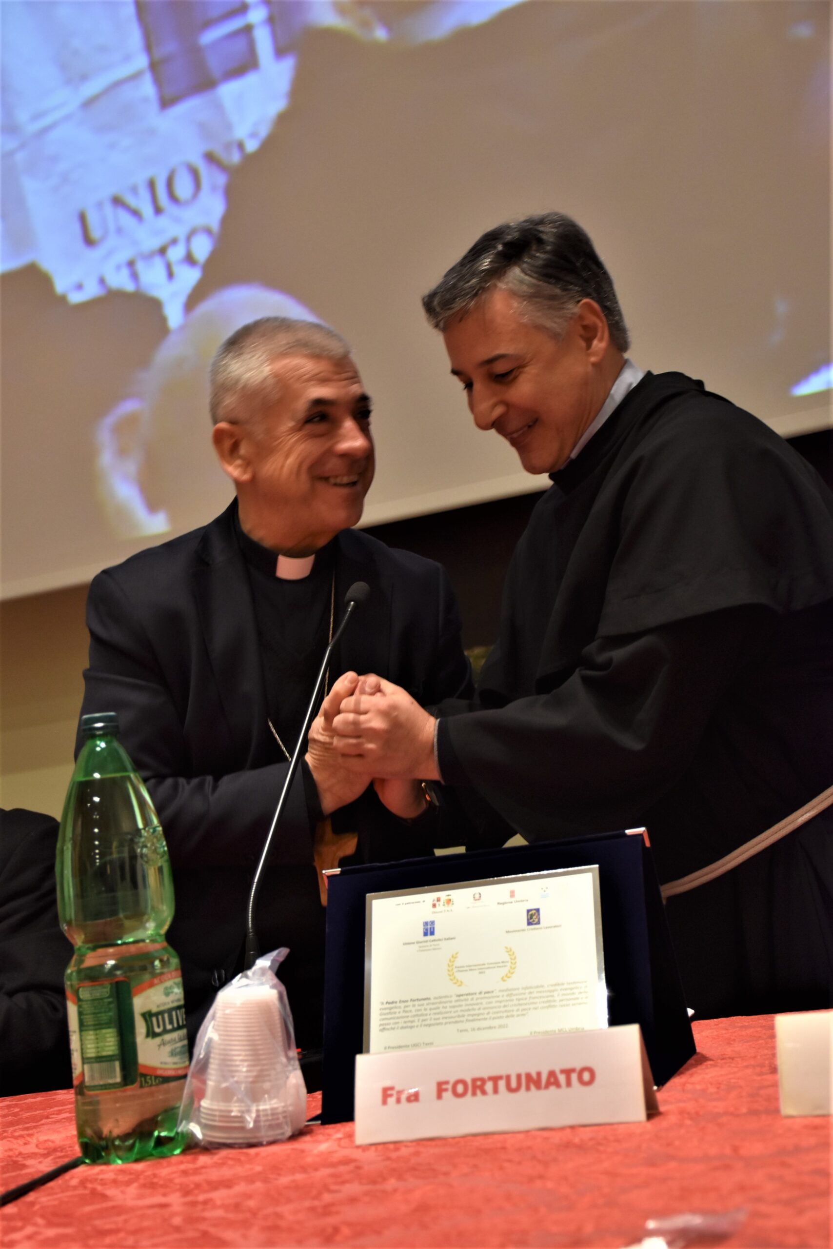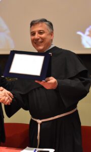 IL PREMIATO Padre Enzo Fortunato, cittadinanza italiana, è un presbitero francescano, frate minore conventuale, già Professore presso la Pontificia Università Antonianum, presso l’Istituto Teologico di Assisi, e presso la Pontificia Facoltà San Bonaventura, ideatore con Ermete Realacci del Manifesto di Assisi, giornalista, scrittore, vincitore del Premio Internazionale di giornalismo «Biagio Agnes», dal 1996 al 2021 è stato direttore della Sala stampa del Sacro Convento di Assisi e successivamente della rivista San Francesco. Nel 2003 ha ideato l’evento televisivo solidale di RAI 1 “Con il cuore, nel nome di Francesco”. Figura di riferimento nazionale e internazionale nel campo dell’economia civile e dello sviluppo sostenibile, Padre Enzo si è impegnato a sostegno della pace in Ucraina con numerose iniziative: nell’ambito di una missione istituzionale e umanitaria è stato ricevuto dal Segretario Generale ONU Guterres a cui ha lanciato l’idea di ritornare con una delegazione di giovani ucraini e russi per gettare le basi per la costruzione della pace del futuro.