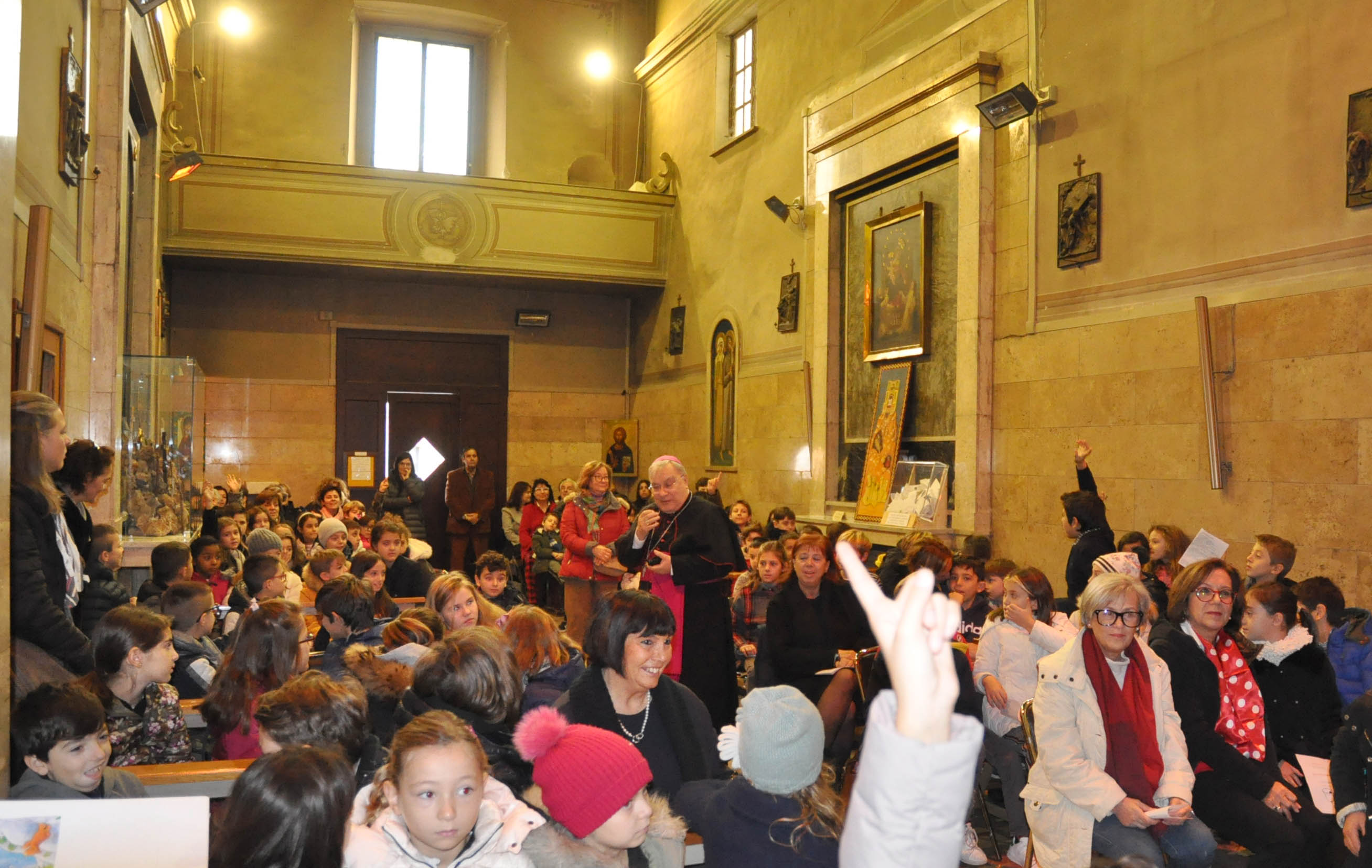 Nella visita pastorale alle parrocchie della Cattedrale, di Santa Croce e di San Salvatore a Terni è stato l’incontro con i gruppi della catechesi dell’iniziazione cristiana dei ragazzi, che si è tenuto in forma congiunta nella chiesa di Santa Croce. I ragazzi si sono presentati attraverso dei cartelloni dedicati al cammino di formazione cristiano, al creato e alla loro comunità parrocchiale. Il vescovo ha dialogato con loro rispondendo alle domande sul ministero del vescovo, sulla vocazione, sulla accoglienza e solidarietà.