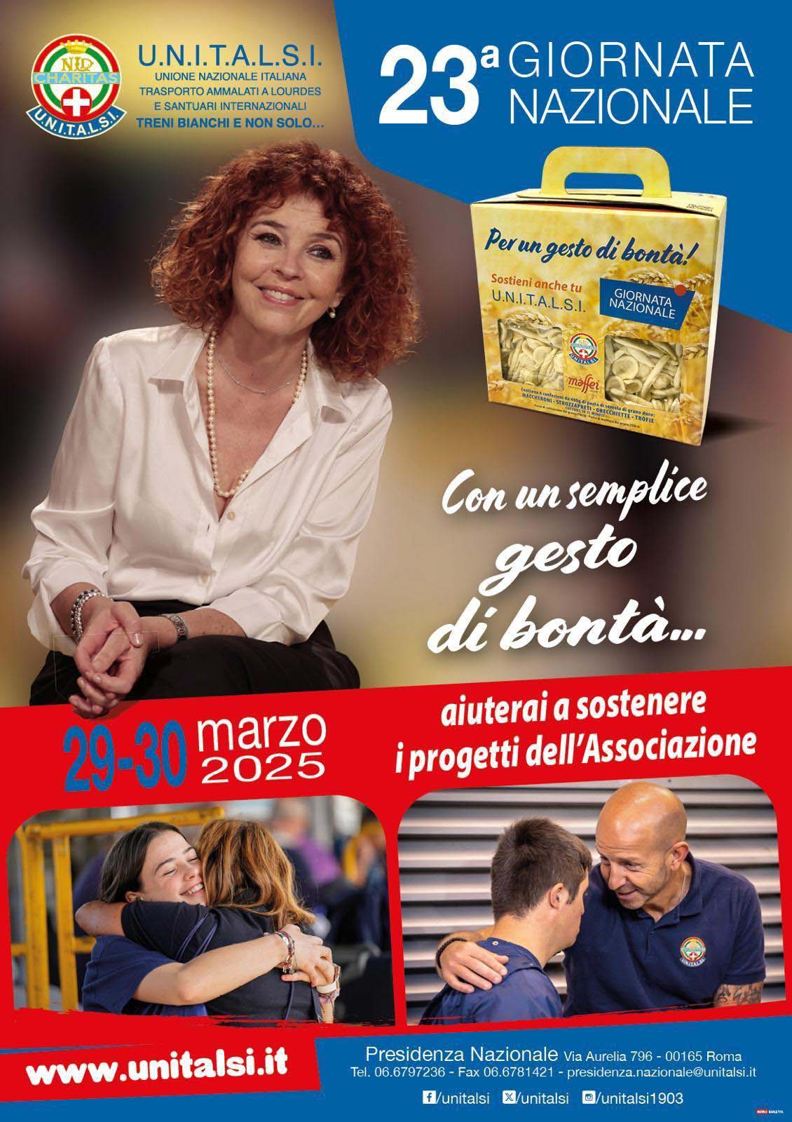 Il 29 e 30 marzo si celebra la 23ª edizione della Giornata Nazionale dell’UNITALSI, un evento di solidarietà che invita tutti a compiere un gesto di bontà, “Sostienici con un gesto di bontà” è il messaggio che accompagnerà la campagna. Sabato 29 e domenica 30 marzo, i volontari saranno presenti con i loro gazebo, dove proporranno, in cambio di una piccola offerta, un cofanetto contenente quattro confezioni di pasta di semola di grano duro da 400 gr di diverse tipologie. Un bene semplice, ma con un grande valore simbolico: il chicco di grano che si fa nutrimento per il corpo e per l’anima. Il cofanetto dell’UNITALSI può essere anche un pensiero solidale, un dono che porta speranza a chi è in difficoltà.