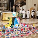 La veglia scandita da canti, ascolto della Parola di Dio e dalla testimonianza di don Sergio Vandini sacerdote diocesano missionario in Congo per circa 20 anni. Al termine è stata consegnata una bustina contenente dei semi di grano e in cui è inserita la bandiera di uno dei Paesi del mondo. Questi semi saranno segni veri di speranza per tutta l’umanità, fino agli estremi confini della terra, se continueremo a rimanere uniti nella preghiera e nell’impegno per la pace e capaci di gesti concreti di carità e amore tra noi e per tutti i popoli della terra. La bandiera ci invita pregare per quel popolo, informandoci anche sulle sue sofferenze, gioie e speranze.