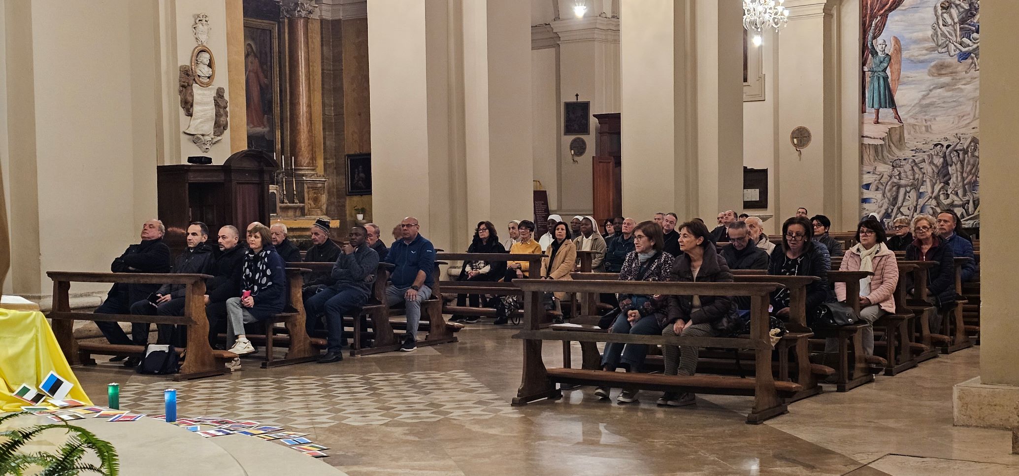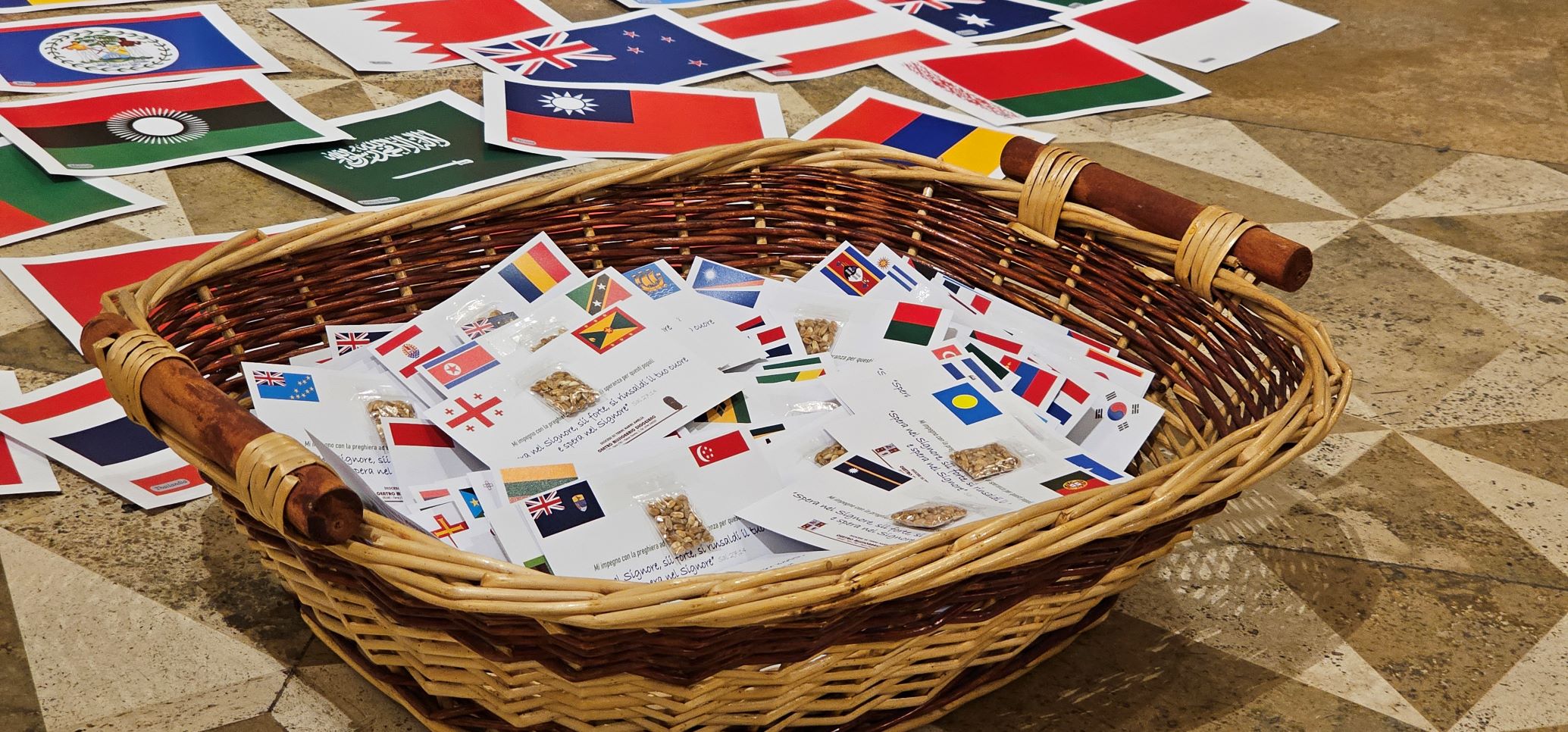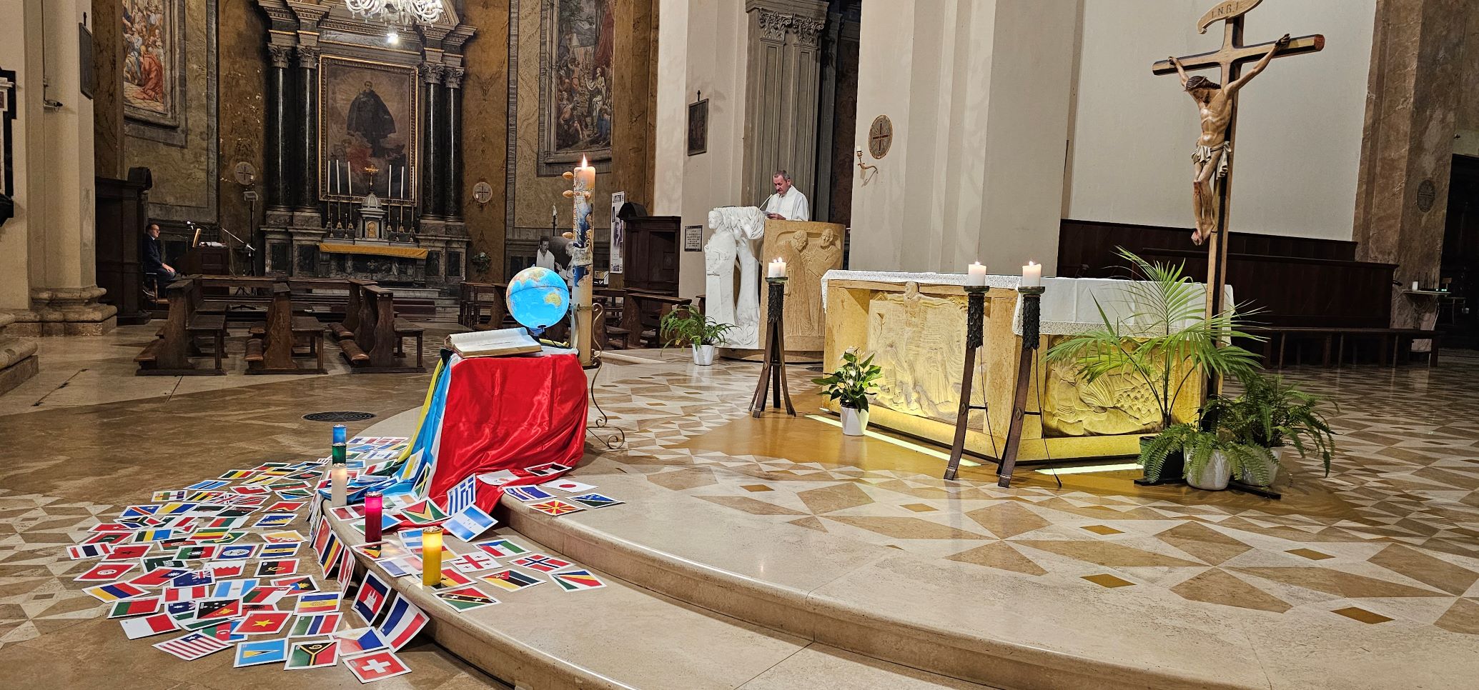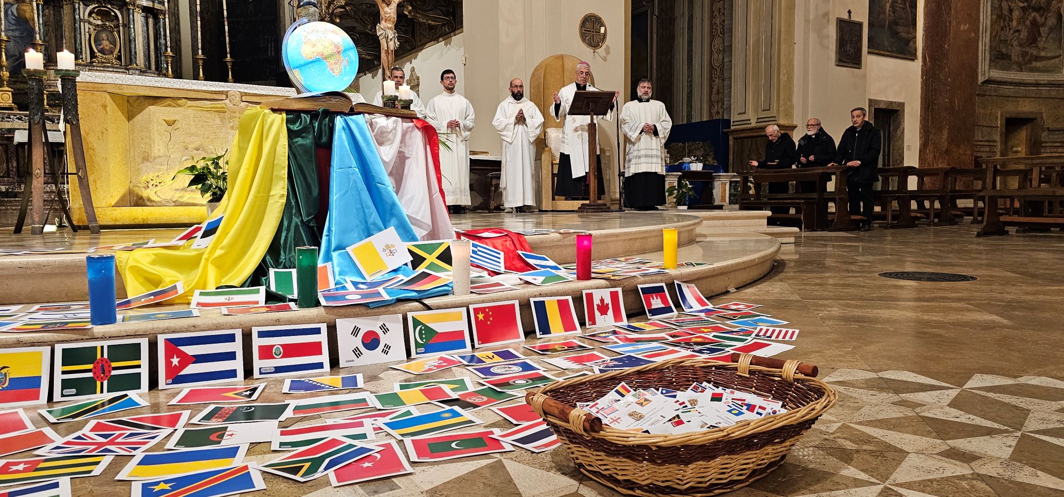 La veglia scandita da canti, ascolto della Parola di Dio e dalla testimonianza di don Sergio Vandini sacerdote diocesano missionario in Congo per circa 20 anni. Al termine è stata consegnata una bustina contenente dei semi di grano e in cui è inserita la bandiera di uno dei Paesi del mondo. Questi semi saranno segni veri di speranza per tutta l’umanità, fino agli estremi confini della terra, se continueremo a rimanere uniti nella preghiera e nell’impegno per la pace e capaci di gesti concreti di carità e amore tra noi e per tutti i popoli della terra. La bandiera ci invita pregare per quel popolo, informandoci anche sulle sue sofferenze, gioie e speranze.