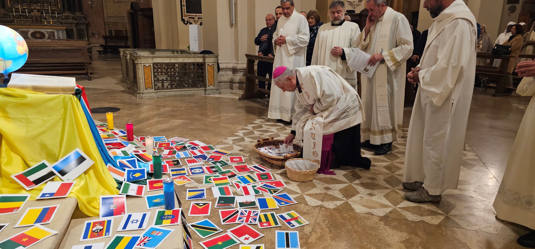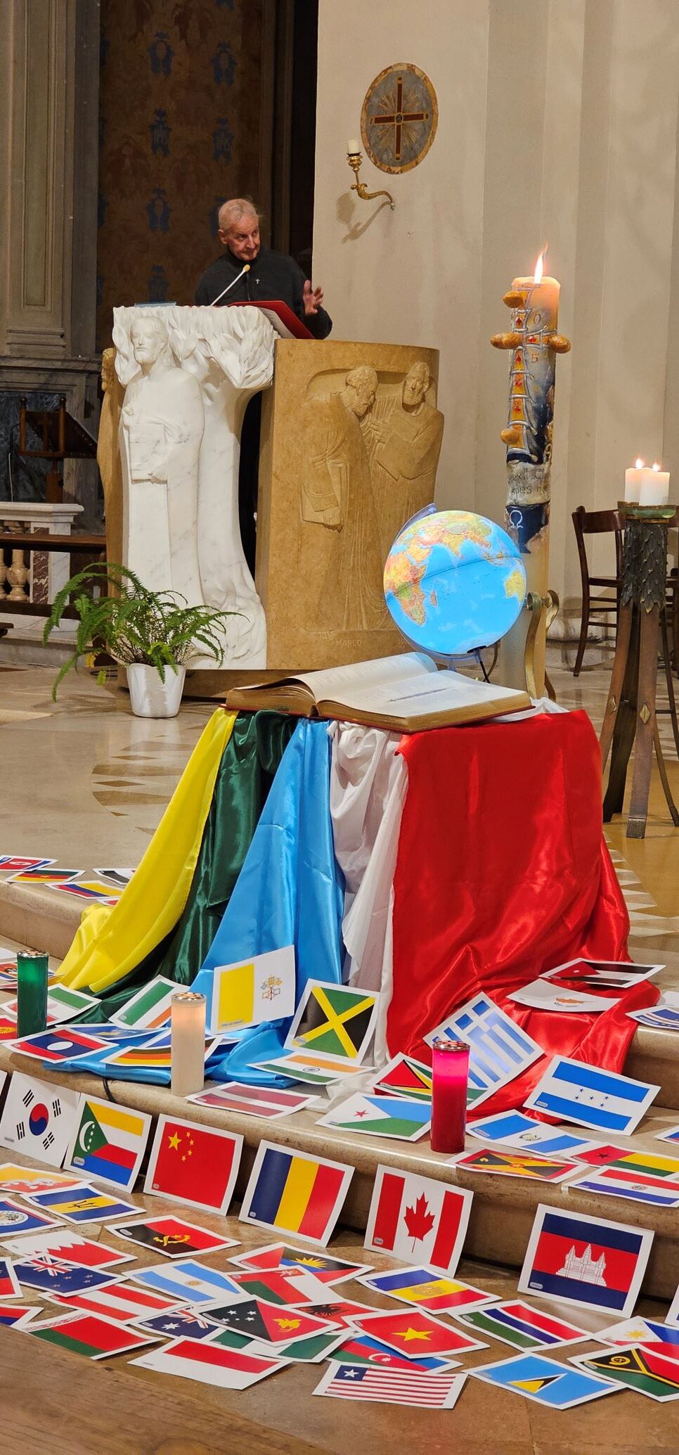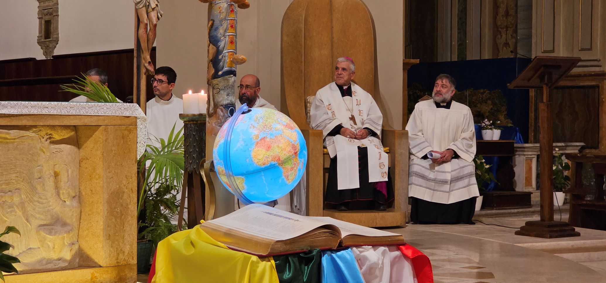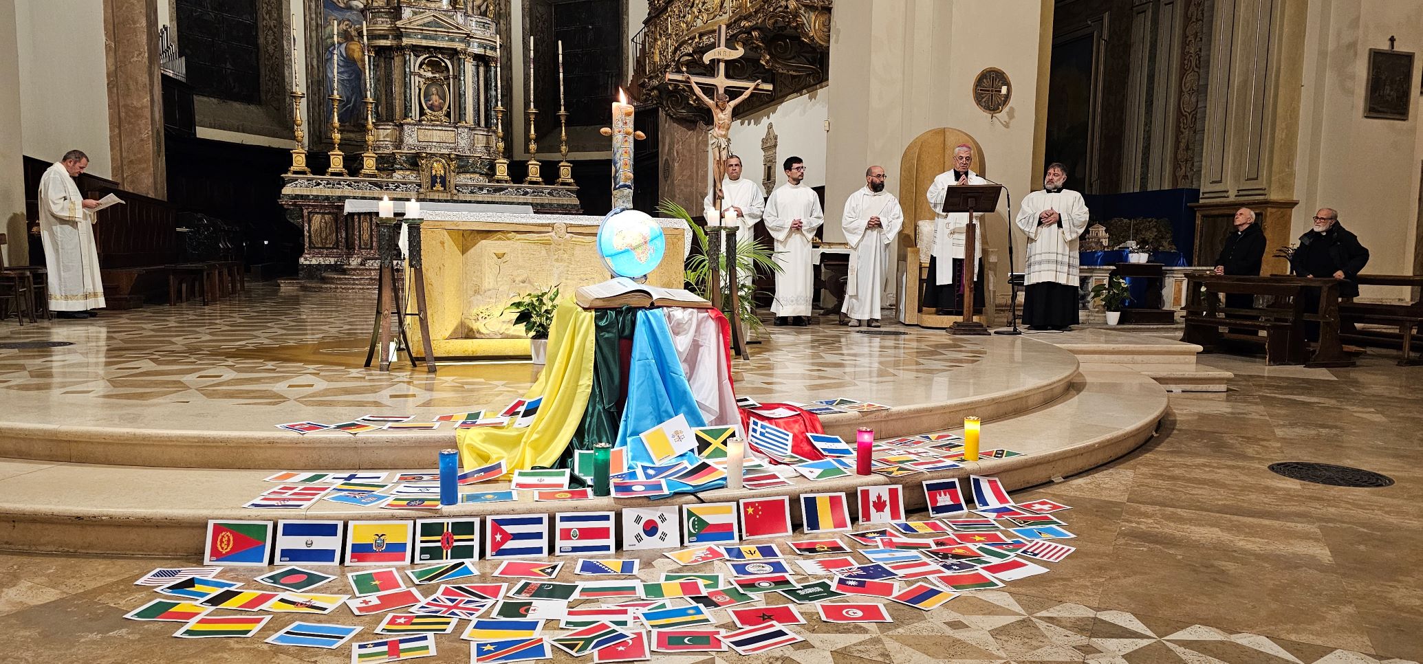 La veglia scandita da canti, ascolto della Parola di Dio e dalla testimonianza di don Sergio Vandini sacerdote diocesano missionario in Congo per circa 20 anni. Al termine è stata consegnata una bustina contenente dei semi di grano e in cui è inserita la bandiera di uno dei Paesi del mondo. Questi semi saranno segni veri di speranza per tutta l’umanità, fino agli estremi confini della terra, se continueremo a rimanere uniti nella preghiera e nell’impegno per la pace e capaci di gesti concreti di carità e amore tra noi e per tutti i popoli della terra. La bandiera ci invita pregare per quel popolo, informandoci anche sulle sue sofferenze, gioie e speranze.