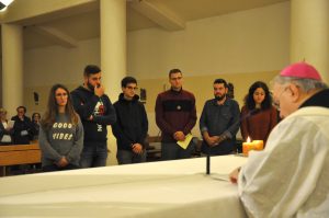 Il vescovo ha quindi consegnato il mandato missionario ai giovani che non è andare in paesi lontani, ma far giungere l’annuncio del Vangelo nelle nostre città, tra i loro coetanei, nelle strade, nelle parrocchie.