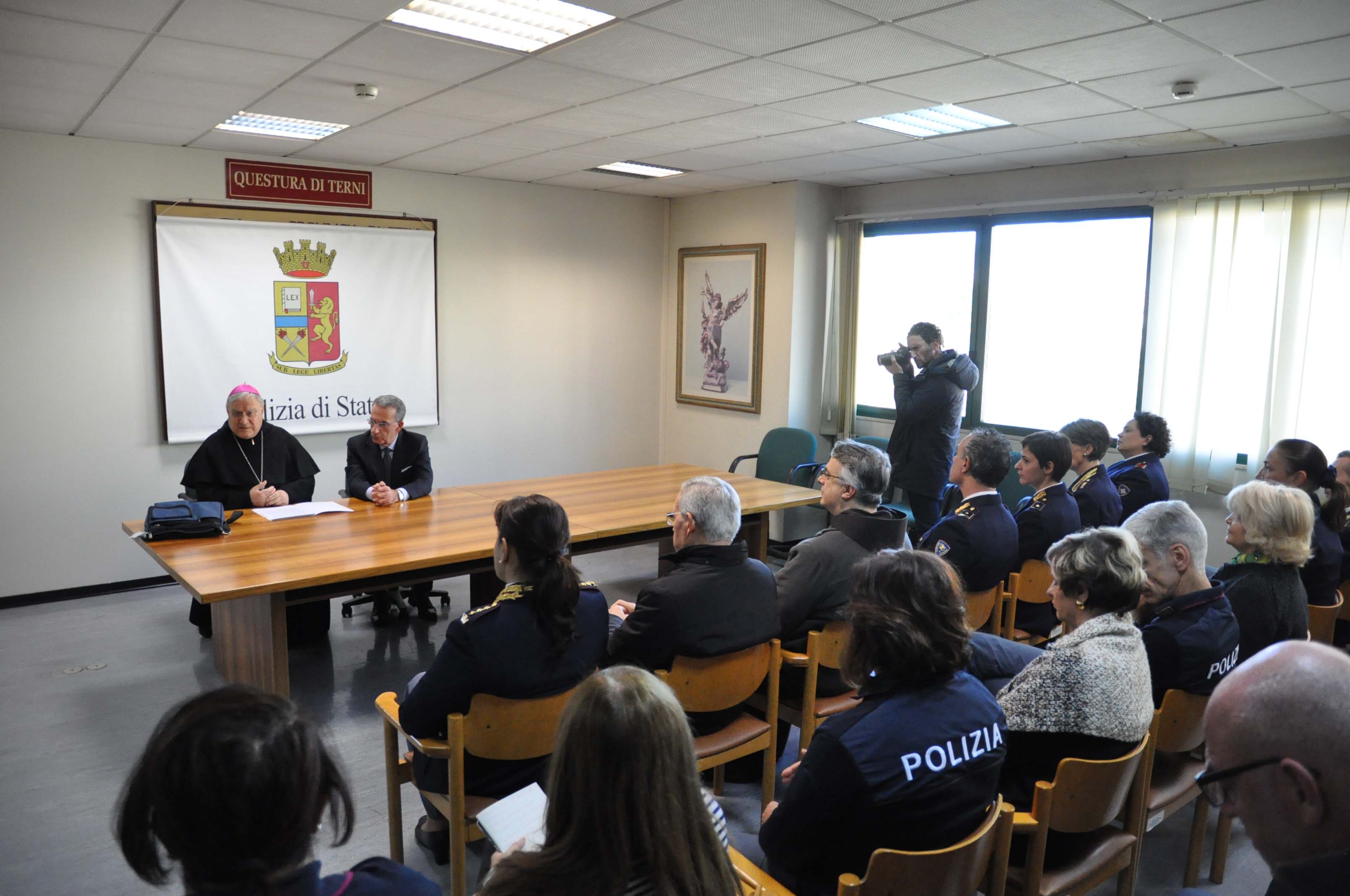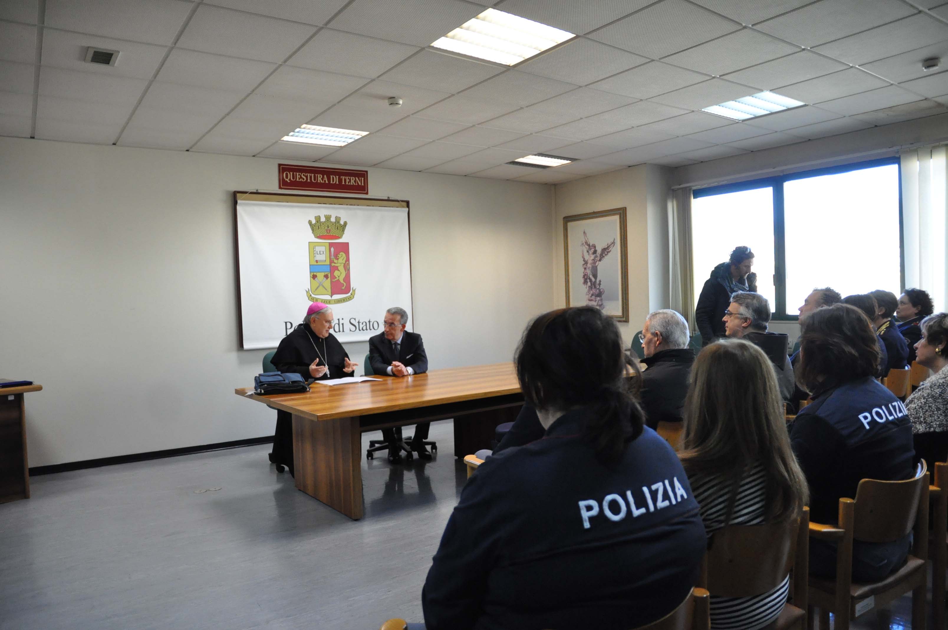 Il primo incontro nella Questura di Terni dove il vescovo è stato accolto dal questore Antonino Messineo, dai vice questori, dirigenti e operatori della Polizia di Stato.