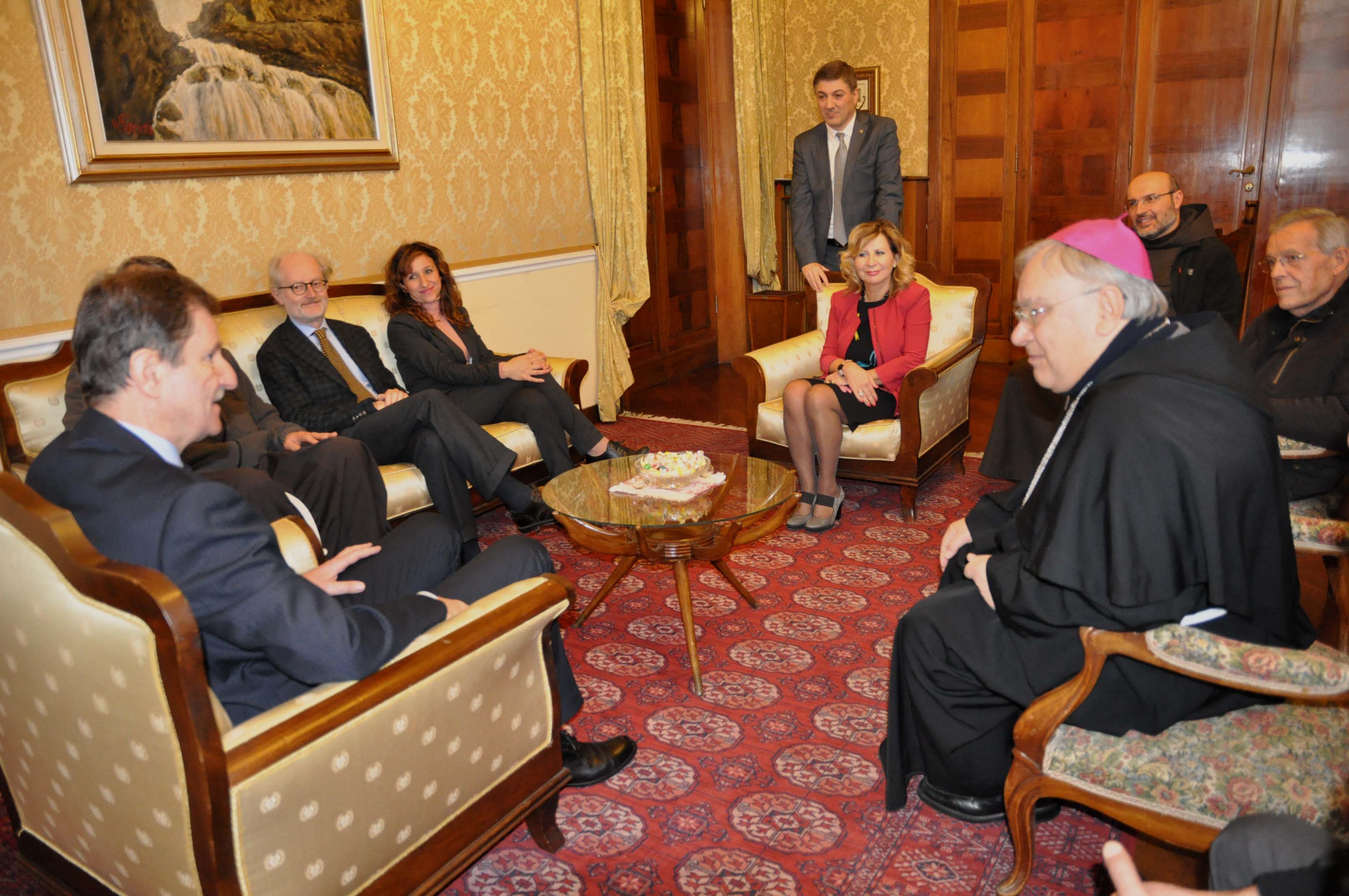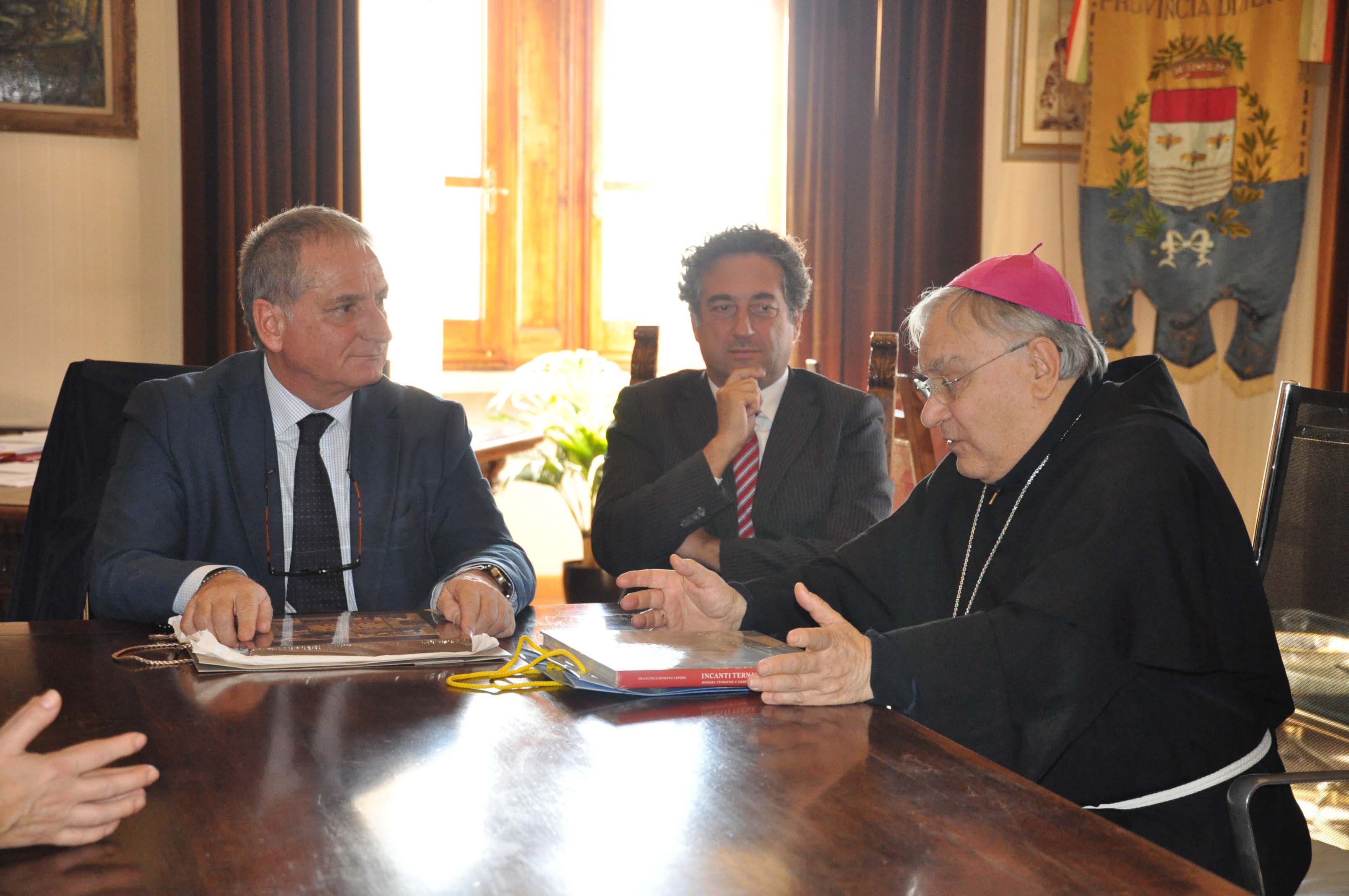 Un appello che il presidente Lattanzi ha colto assicurando il supporto dell’ente ed esprimendo soddisfazione per l’importanza e la fiducia che il vescovo ripone nella Provincia. “E’ la stessa che vediamo nei cittadini – ha detto il presidente – a differenza di quanto invece avviene fra le istituzioni che danno ancora per cancellate le Province, senza tener conto dell’esito referendario sulle modifiche costituzionali. Sull’appello di mons. Piemontese alla collaborazione sul fronte migranti diamo la nostra totale disponibilità”, ha concluso. Al termine del colloquio si è svolto uno scambio di doni e successivamente il vescovo è stato accompagnato dai dirigenti in una visita agli uffici dell’amministrazione provinciale.