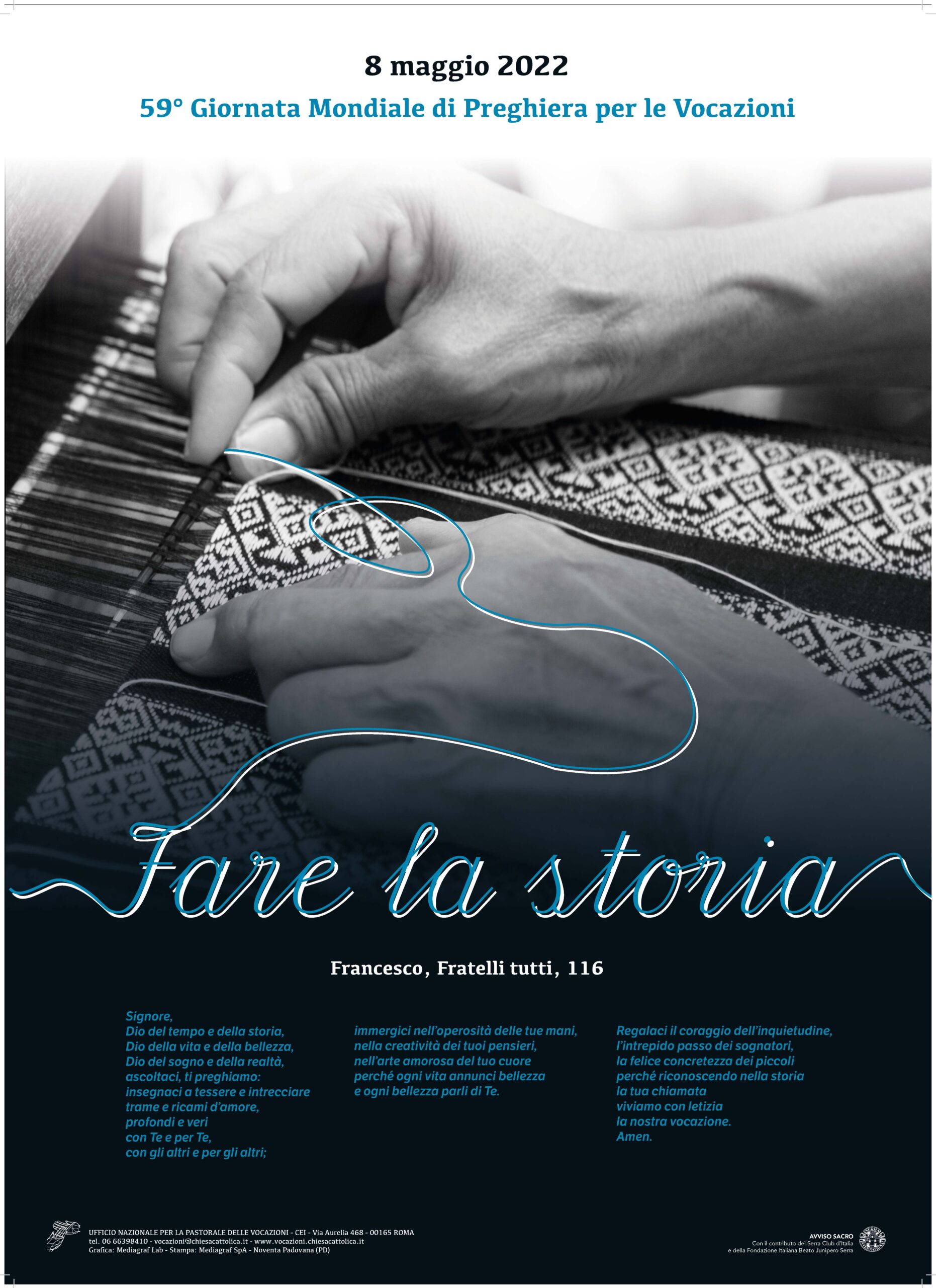 «Fare la storia» espressione tratta da “Fratelli Tutti” (116) di papa Francesco è il tema scelto per la giornata mondiale di preghiera per le Vocazioni che si celebra in tutte le chiese domenica 8 maggio, la Chiesa ci richiama in modo particolare a intendere la vita come una chiamata di Dio, una risposta grata all’amore di Dio che sempre ci precede.